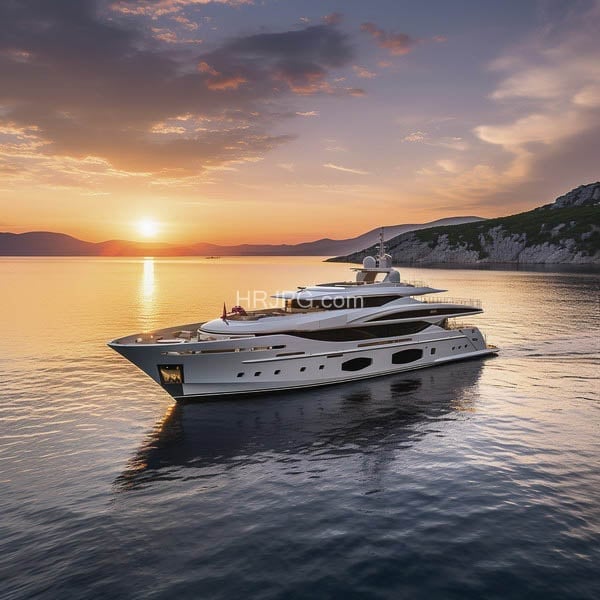 Ivory vessel floating upon a sea of liquid sunset gold