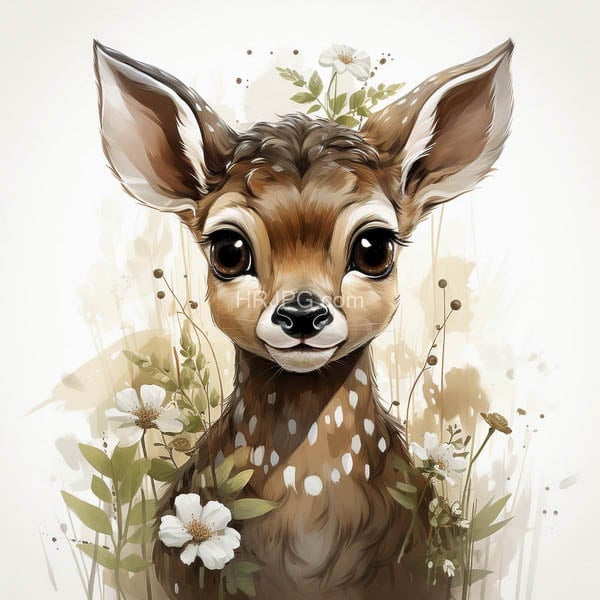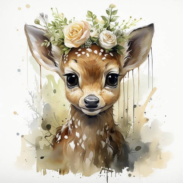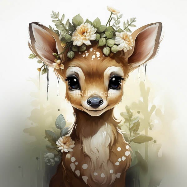 Profile of a silent fawn draped in seasonal floral splendor