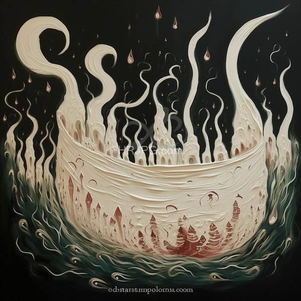 Alabaster basin overflowing with a swirling prism of cosmic fog