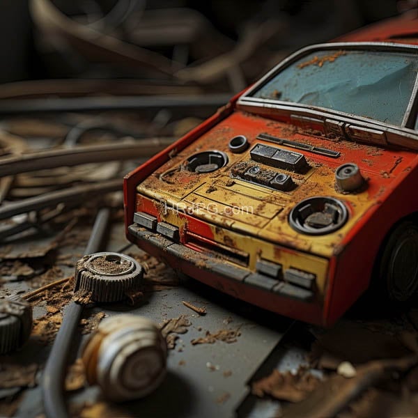 Desolate ruby machine haunting the silence of a broken empire